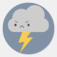 Pegatina Redonda Kawaii Thunder y Lightning Cloud