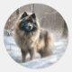 Pegatina Redonda Keeshond Let It Snow Navidades