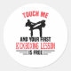Diseño de Kickboxer con ilustracion de alta patada y diciendo: Tócame y tu primera lección de kickboxing es gratis. Regalo para boxeadores que practican artes marciales mixtas, autodefensa o boxeo.