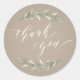 Pegatina moderna de agradecimiento con caligrafía con diseño de follaje verde acuarela sobre fondo de papel kraft rústico, simple y elegante, ideal para boda rústica, boda de primavera y boda de verano.