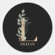Letra L monograma floral. Letra L en textura marrón dorada acentuada con hojas de compuestos de acuarela verde, flores y salpicaduras de oro fundido. Personalizado con el nombre en el tipo de letra coincidente.