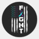 Pegatina Redonda La bandera estadounidense patriótica amenaza de pr