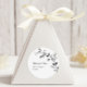 Esta vid serpenteante hace una declaración elegante para sus etiquetas de favores de boda. Puede personalizar su información y cambiar la redacción para que se ajuste a su evento.