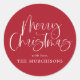La caligrafía roja moderna y sencilla Merry Christmas Classic Round Pegatina presenta una caligrafía moderna.