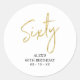 Este sencillo personalizado gracias pegatina añadirá un detalle elegante a su día especial. Este diseño presenta letras de guiones modernas "Sixty" con texto personalizado. En mi tienda BaraBomDesign hay disponibles invitaciones para cumplir 60 años y suministros para fiestas.