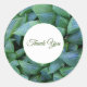 Guión personalizado Gracias pegatinas con una foto de mis bonitos plantas suculentas de la havalía verde con hojas pequeñas en tonos verdes con rayas azules.