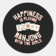 Pegatina Redonda La felicidad de jugar a Mahjong con el