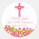 Pegatina Redonda La flor rosa de la cruz dulce, primera comunión sa