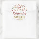 El retiro es un pegatina de etiquetas con favores dulces con un patrón de confeti rojo y oro.