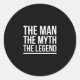 Pegatina Redonda La leyenda del mito del hombre dice graciosamente