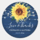 Estos bodas agradecen a los pegatinas que tienen un girasol rústico, flores de aliento de los niños y luces de cuerda sobre un fondo de grano azul marino de madera. Personalice estos pegatinas con sus nombres y fecha de boda. Estos pegatinas forman parte de una colección que incluye artículos de papelería y regalos para bodas. Visite las páginas de colección de nuestra tienda para ver toda la gama de productos bodas y de novias que puede personalizar para su boda.