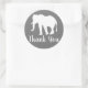 ¡Estos pegatinas modernos son excelentes para cualquier ocasión! Tienen una gran silueta blanca de elefantes y la frase "gracias" en escritura blanca. El fondo es un color gris que se puede cambiar. Son geniales para una ducha de elefante.