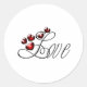 Pegatina Redonda La palabra amor con corazones brillantes rojos Clá