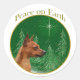 Paz en la Tierra. Muestre su razón para la temporada con su Pinscher en miniatura en este diseño único de perro acentuado con verde y oro. Es genial en un adorno, tarjeta de saludo o pegatina.