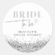 Esta novia a ser pegatina cuenta con secuencias falsas de purpurinas plateados, letra negrita moderna y un divertido corazón dibujado a mano. Edite fácilmente la redacción en negro para satisfacer las necesidades de su evento. Este pegatina es perfecto para su ducha de novia glam, el desayuno nupcial o el fin de semana de soltera.