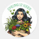 Pegatina Redonda La primavera llegó | Dama con armería de plantas