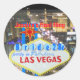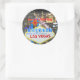 Los pegatinas finales de las Vegas o de la bachillerato son divertidos al sellar los sobres en sus invitaciones. O usar como decoraciones en tazas, botellas de bebidas y bolsas de regalo. Esta versión personalizado del famoso cartel de bienvenida de Las Vegas en The Strip tiene una foto aérea de las luces de neón casino de Las Vegas Boulevard por la noche en segundo plano.