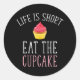 Pegatina Redonda La Vida Es Corta - Comer El Pastel