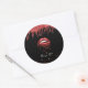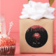 Pegatina redonda editable de labios y colmillos de vampiro para Halloween. El diseño presenta labios rojos que gotean sangre y colmillos de vampiro en un fondo negro. Purpurina roja y destellos glamurosos decoran la mitad inferior de la pegatina. Personaliza el texto y cambia el estilo y el color de la fuente según convenga. Reposicione y elimine el texto utilizando la herramienta de diseño si es necesario. La purpurina no es "purpurina real" sino un efecto impreso.