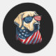 Pegatina Redonda Labrador Amarillo Con Bandera Estadounidense Patri