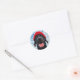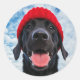 Pegatina Redonda Labrador feliz en una Beanie Roja bajo un cielo az
