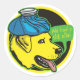 Tuvimos una Noche Enferma. Se presenta un recuperador de labrador amarillo con bolsa de hielo retro en un esfuerzo por aliviar la resaca.