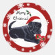 Pegatina Redonda Labrador negro recupera Navidades con copo de niev