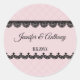 Pegatina Redonda Lace negro en una boda personalizada rosa suave