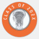 Pegatinas de graduación nocturna senior del equipo de Lacrosse con un palo lax en el fondo naranja. Editar texto para personalizar.