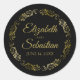 Pegatina Redonda Lacy Gold Filigree Elegant Black Wedding Favor