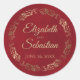Pegatina Redonda Lacy Gold Filigree Elegant Crimson Boda Rojo