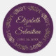Pegatina Redonda Lacy Gold Filigree Elegant Plum Purple Boda
