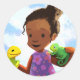 Pegatina Redonda Ladi, Liz y Cam: 3 amigos juntos