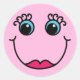 Esta emoji de dama tiene una cara rosa, ojos azules, pestañas largas y pintalabios rosados calientes.