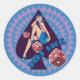 La personificación de buena suerte, fortuna y estilo. *chica vintage de alfileres rodeado en un halo de espadas y diamantes sobre un pegatina.
