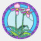 Pegatina Redonda Lady Slipper Orchids en vidrio manchado circular