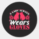 Pegatina Redonda Lady Viste Guantes de boxeo Luchando contra el gim