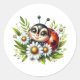 Pegatina Redonda Ladybug de acuarela