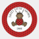Pegatina de Ronda Clásico de Bebé Africano-Americano con puntos rojos y negros. Agregue su propio texto, nombre o mensaje. Ideal para bolsas de favores para duchas de bebé, cumpleaños y más.