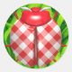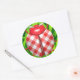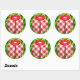 Pegatina Redonda Ladybug grass gingham check lindo rojo blanco verd