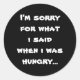 Pegatina Redonda Lamento lo que dije cuando tenía hambre...