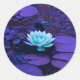 Pegatina Redonda Lámpara Flor Morado Azul Turquesa Floral Pond Zen