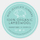 Ideal para artículos tejidos caseros y lana hilada a mano. Personalice con el nombre de su negocio de productos de lana y otros detalles del producto y su propio logotipo o deje el esquema de oveja proporcionado. Dé un toque profesional a sus productos para vender en mercados o en línea. Arte de línea gráfica simple en oveja de texto blanco simple y logotipos de cuidado de prendas en un fondo aqua con texto blanco y negro. Otros colores y diseños disponibles y se realizan solicitudes. Arte y diseño por Sarah Trett para www.mylittleeden.com en Zazzle.