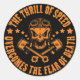 Calavera malvada y pistones cruzados con letras de "La emoción de la velocidad: vence el miedo a la muerte". También hay algunas estrellas. Tinta de estilo con problemas. Camisetas, patanes, pegatinas, regalos.