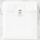 Este sencillo diseño rústico presenta hojas de eucalipto de color agua con una cruz de color dorado en el centro, con el nombre del niño en la tipografía de escritura de bonito y la primera Comunión Santa y la fecha en la parte inferior del pegatina. Por favor vea esta colección para coordinar invitaciones religiosas.