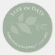 Pegatina Redonda Las hojas verdes simples ahorran la fecha