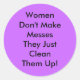 Las mujeres no hacen piruetas es un producto de la declaración humorística. Esto resalta el hecho de que las mujeres no deberían tener que limpiar el caos de otra persona. Desafortunadamente, muchas mujeres todavía pueden identificarse con el hecho de que a menudo se las deja limpiando después de otras. Si eres una de esas mujeres que pueden identificarse con esto, entonces puedes apreciar el humor en esta declaración.