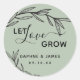 Pegatina verde de tierra con hojas de laurel, que el amor crezca en escritura y letra moderna. Ideal para los predios de boda.