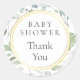 Laurel garland faux gold Relieve metalizado baby ducha gracias pegatina redondo clásico. Diseñado para coordinar con nuestra colección de duchas para bebés Laurel garland. Una lucioperca decorativa de laurel rodea un falso borde de Relieve metalizado dorado que contiene un mensaje de agradecimiento, enmarcado en un elegante texto clásico. Diseñado por Thisisnotme©