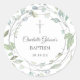 Pegatina Redonda Laurel Garland Faux Silver Baptism Christening